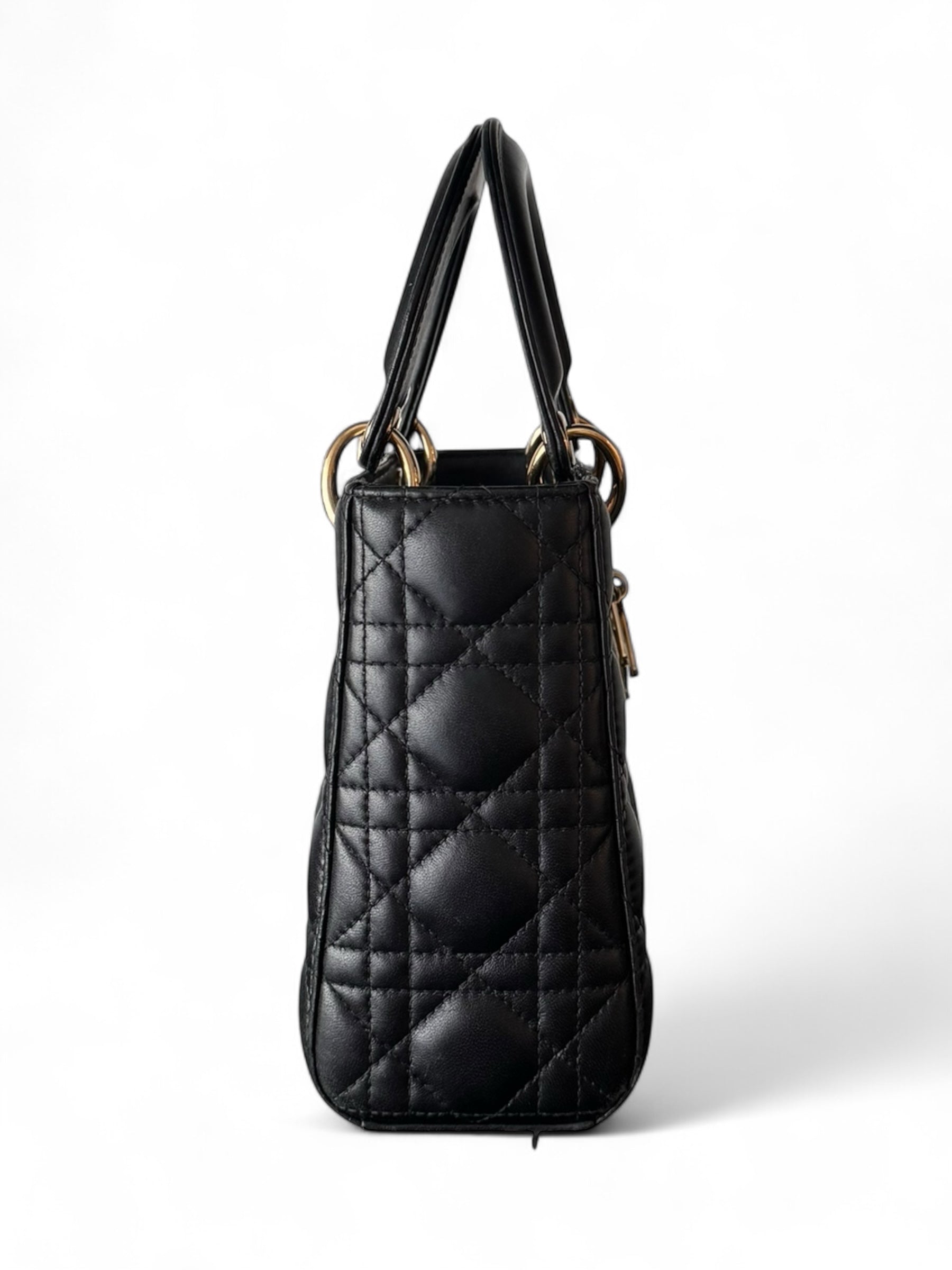 Black leather Small GHW Lady Dior
