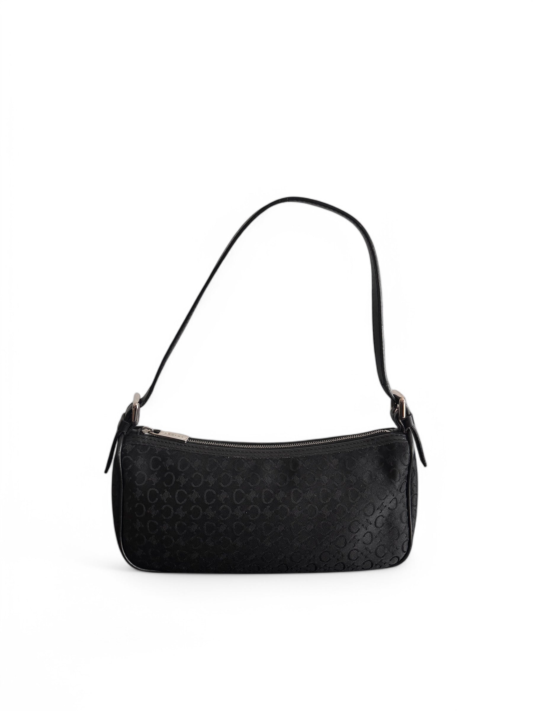 Sleek and sophisticated, this Celine Shoulder Bag is crafted from canvas and leather in a timeless black hue. With its minimalist design and compact silhouette, it’s the perfect statement piece for any occasion.