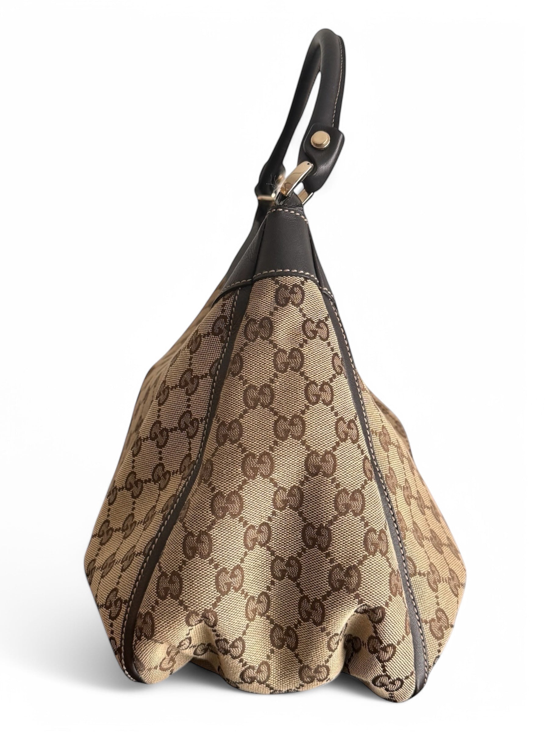 A classic and versatile piece, the Gucci Abbey Bag combines tan canvas and leather for an effortlessly chic look. With a spacious interior and timeless design, it’s perfect for everyday use.