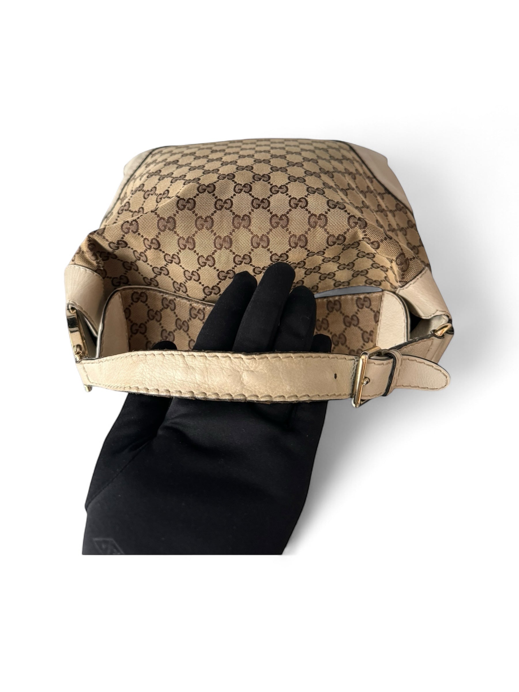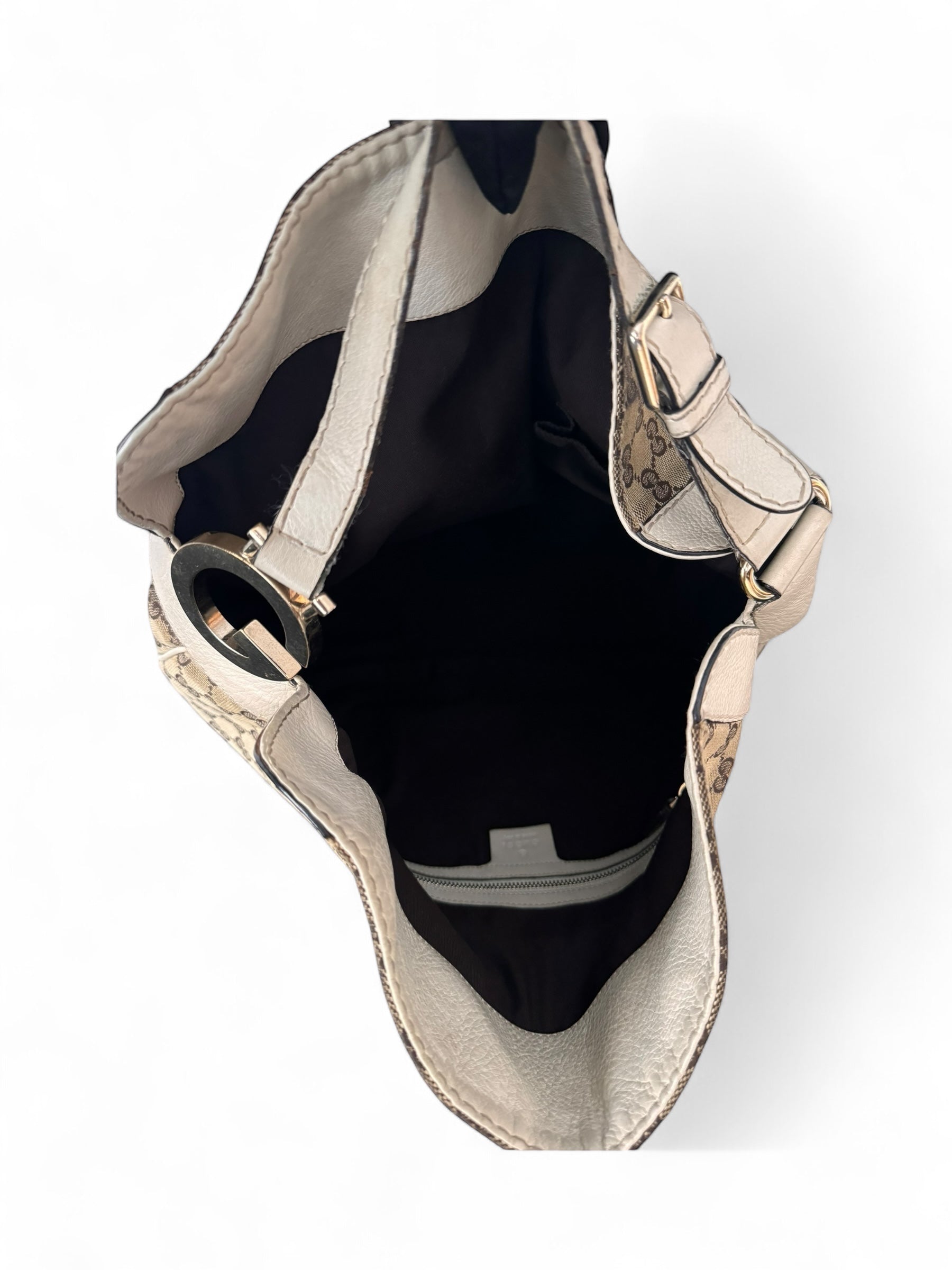 Gucci GG Canvas White Leather Trim Charlotte Hobo bag