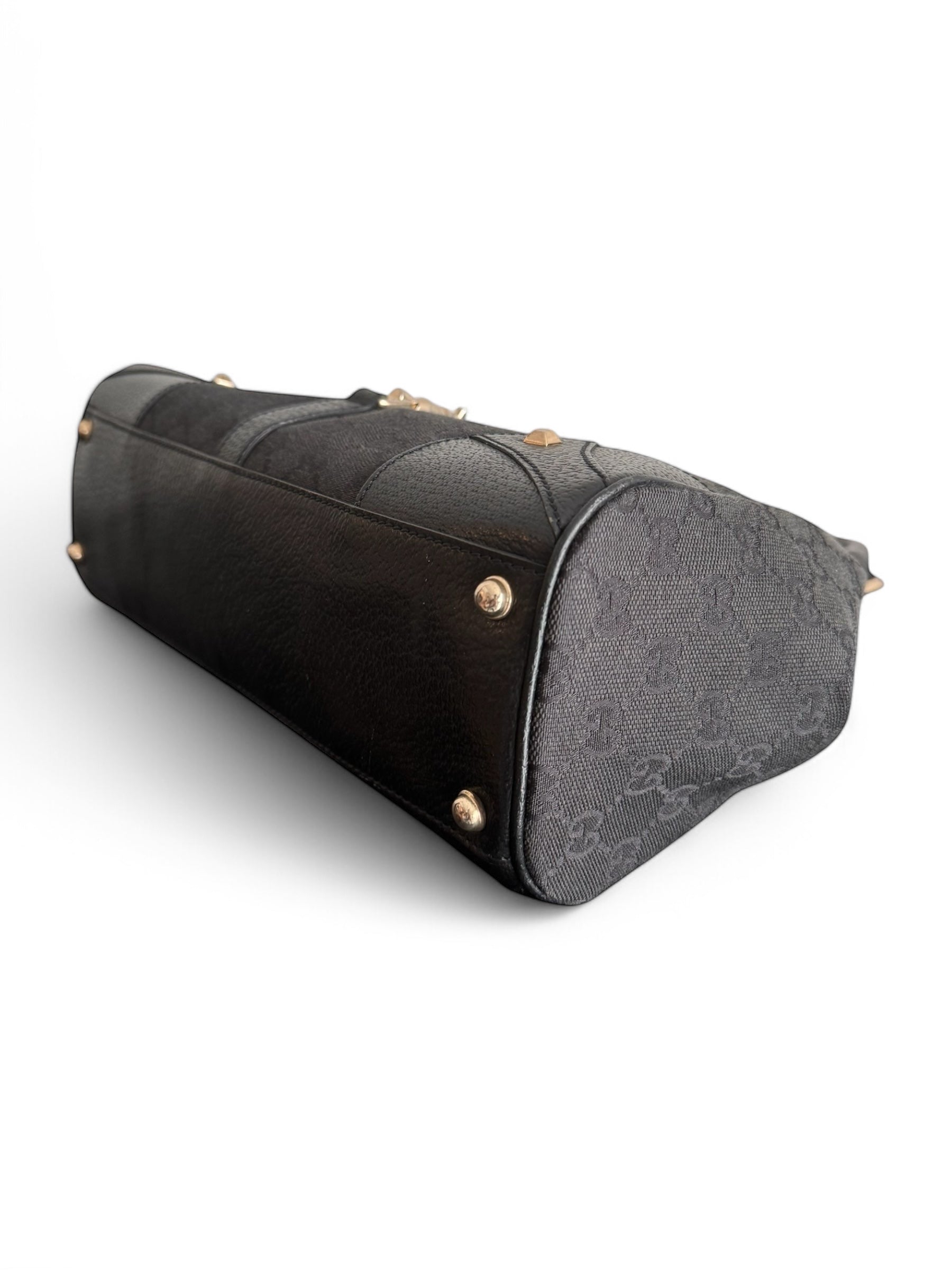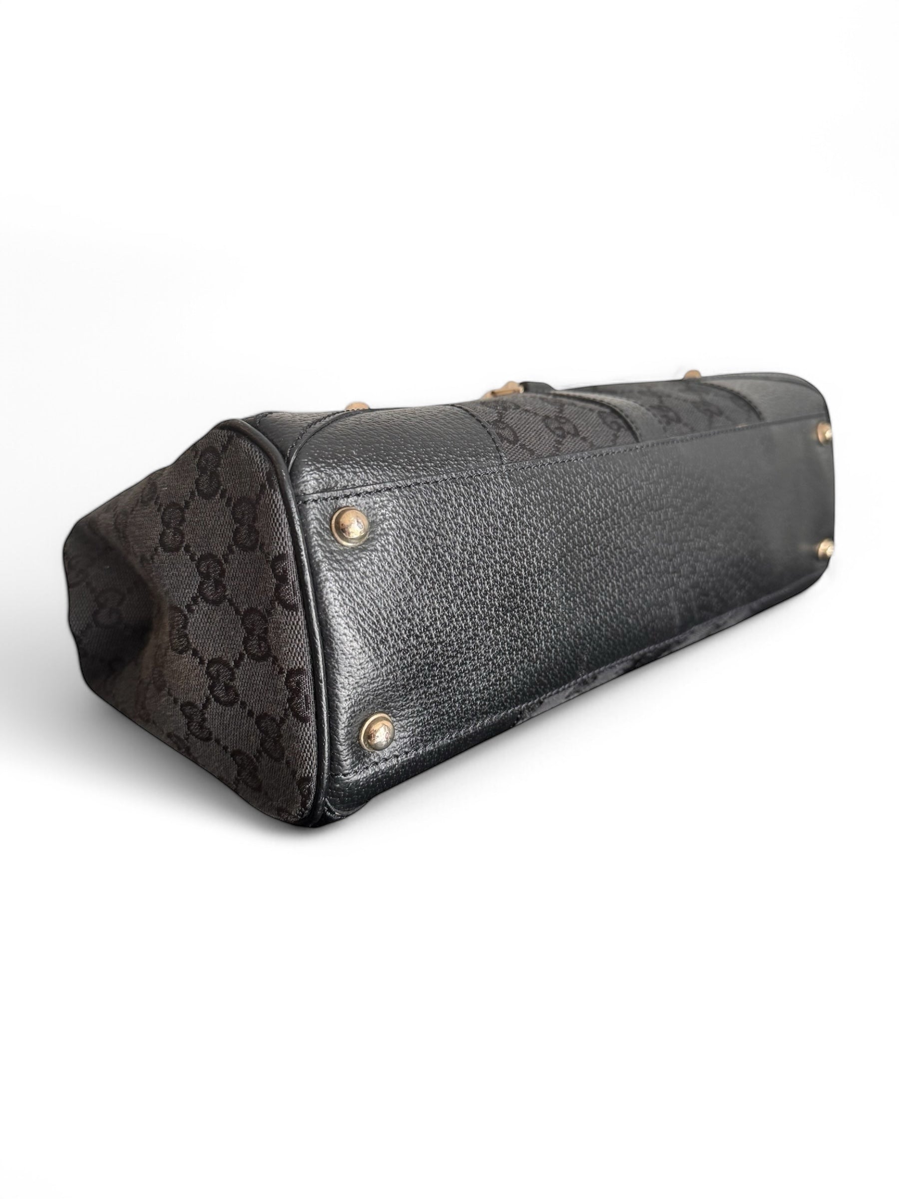 Vintage Gucci Black Leather & Monogram Piston Clasp Closure Jackie Bag