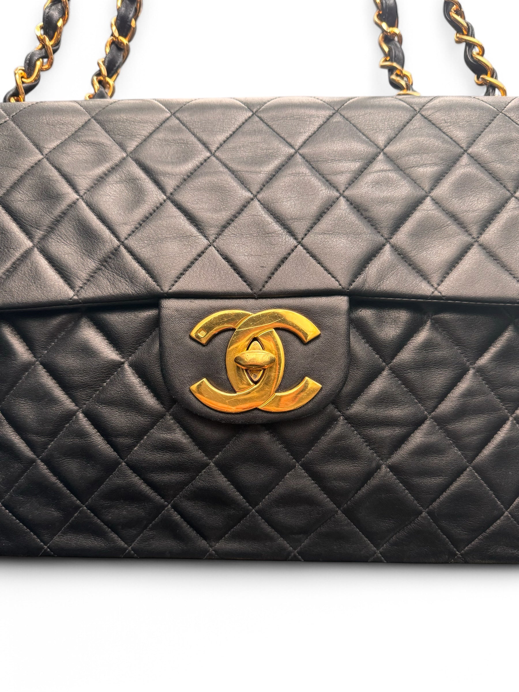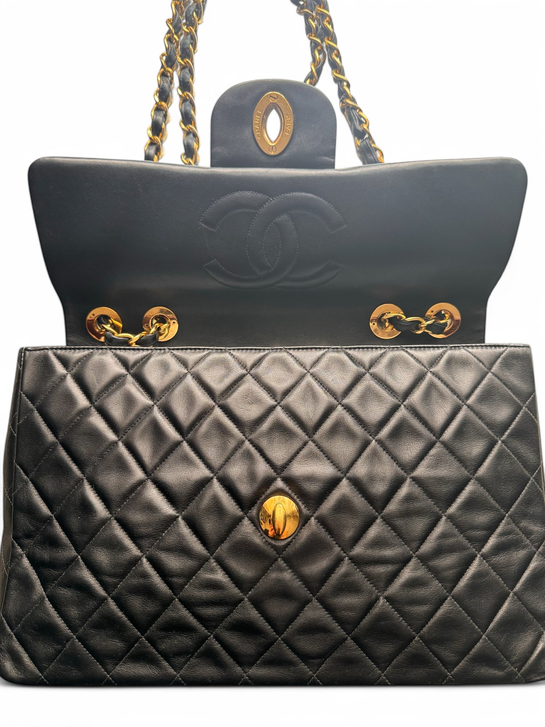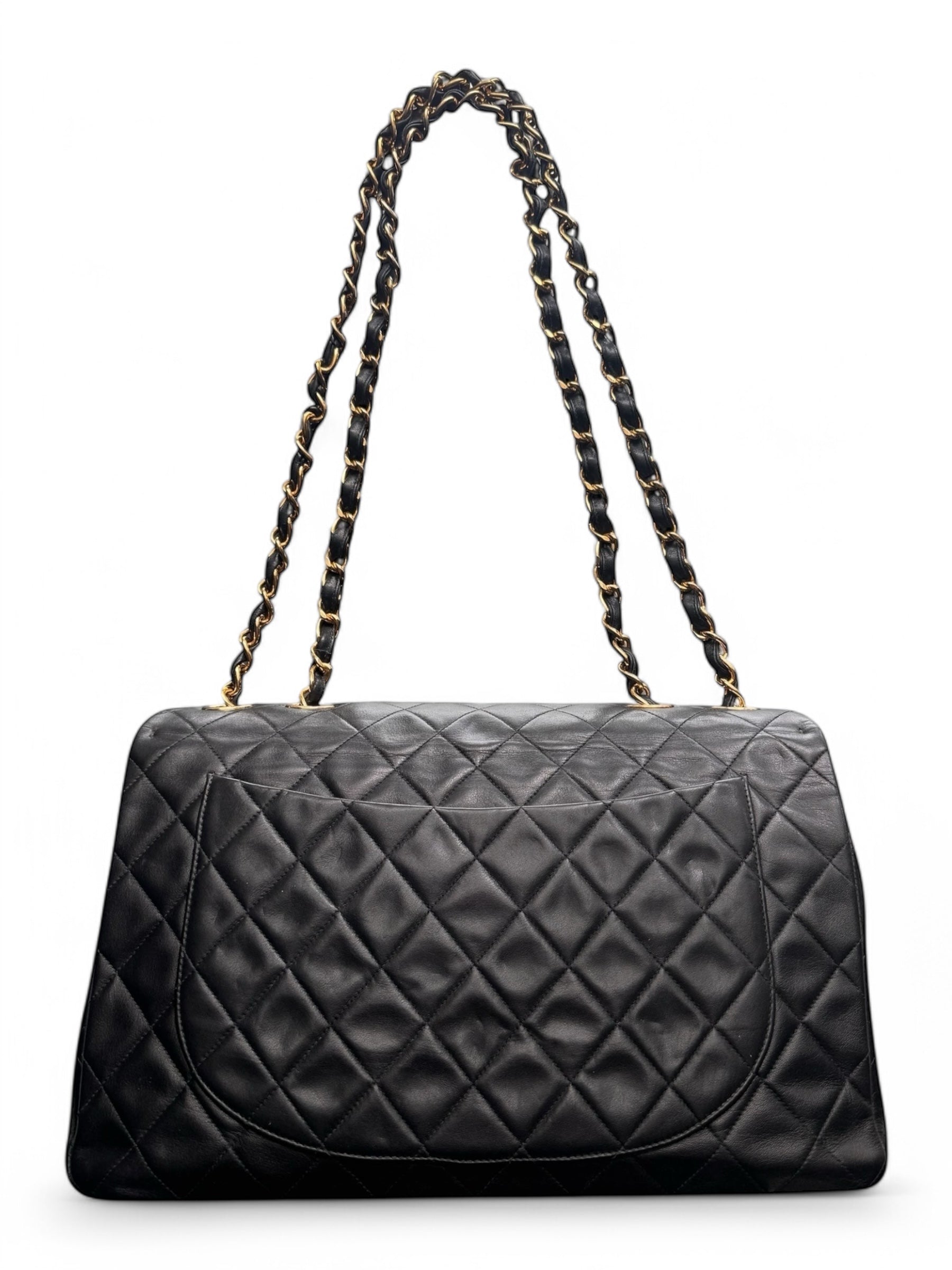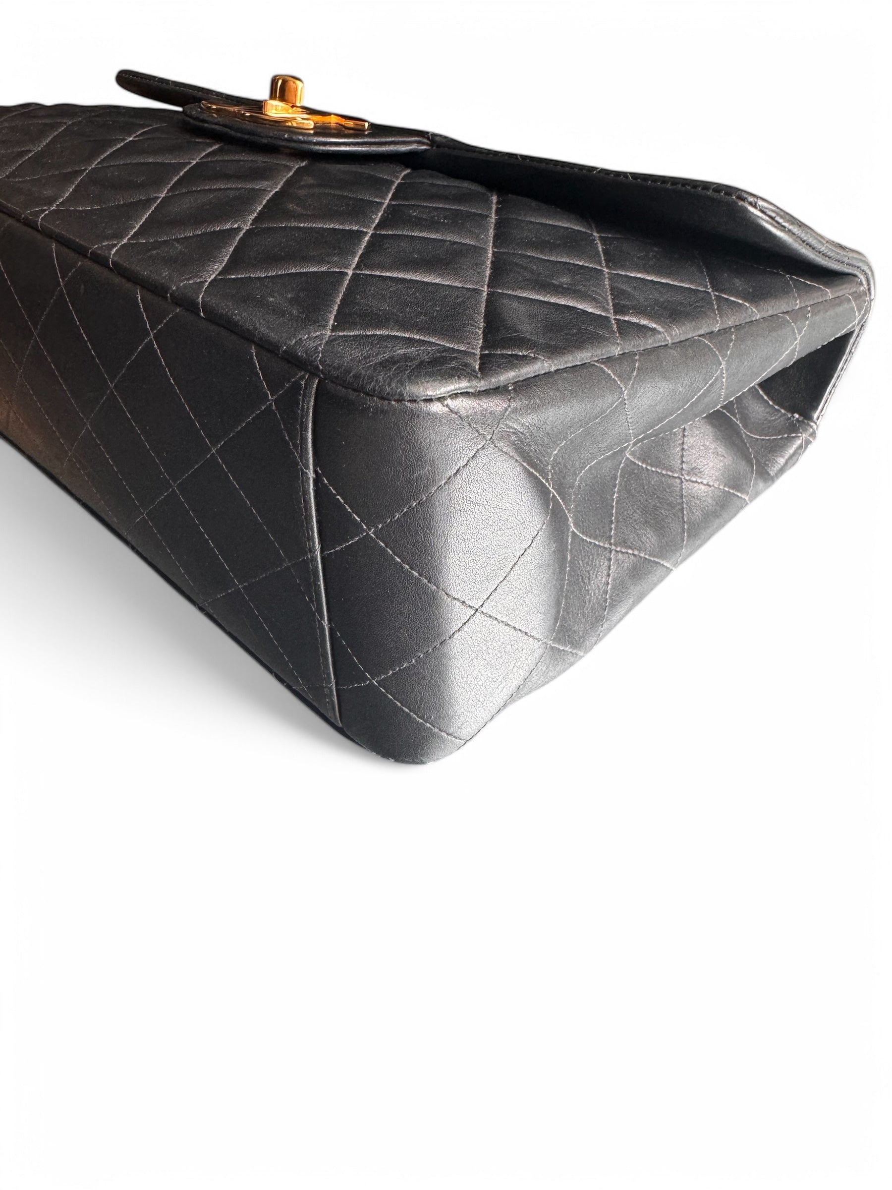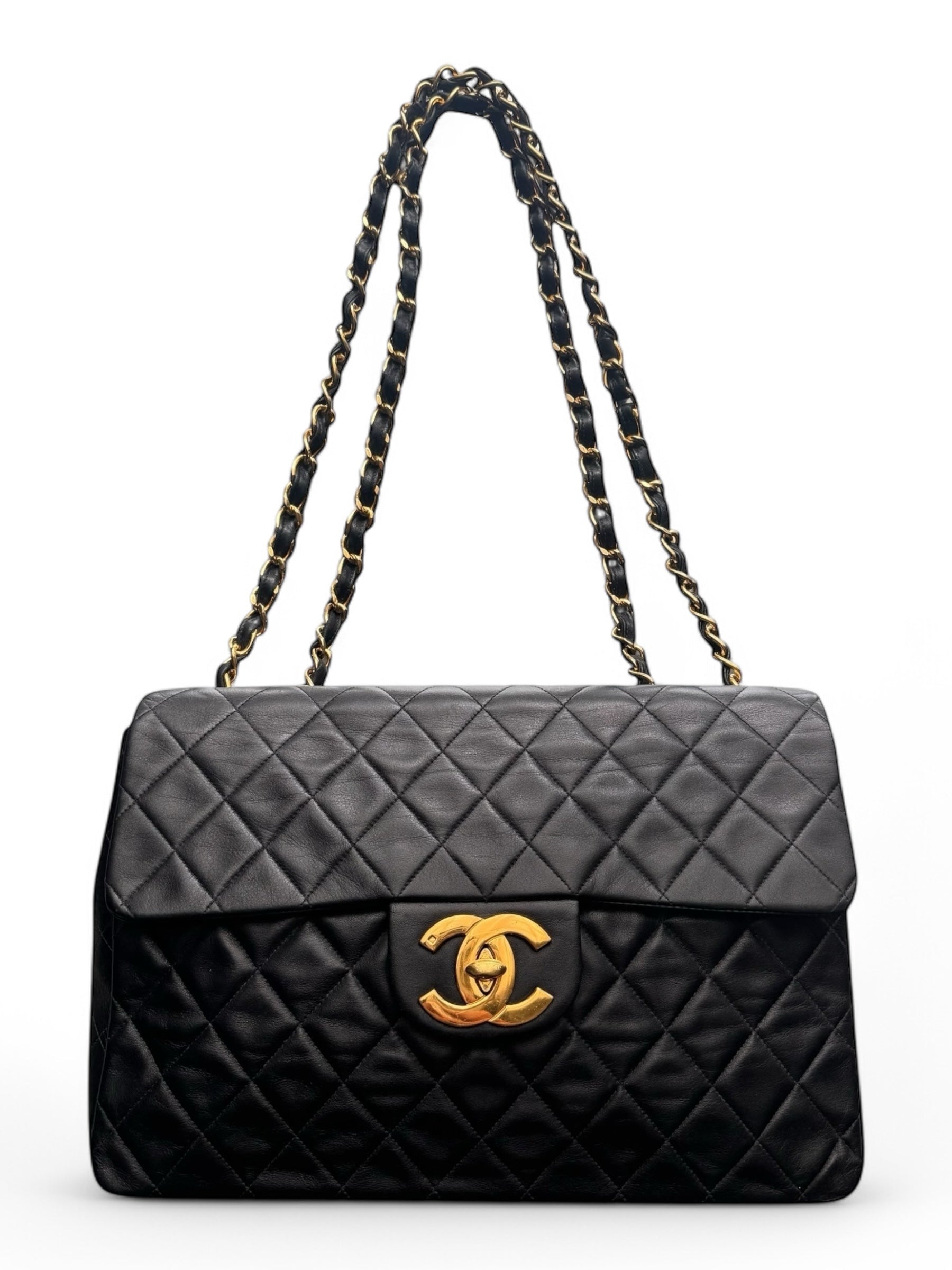 90s Chanel Black Lambskin Leather Maxi with 24k GHW